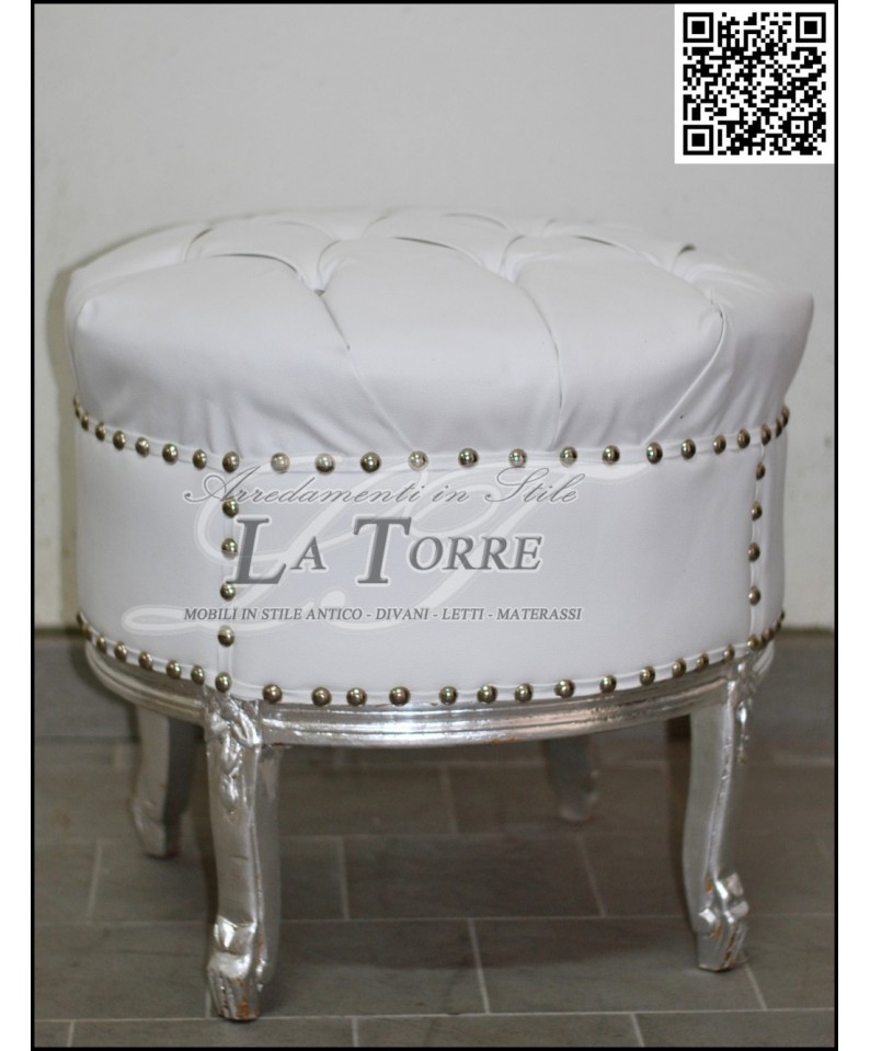 Modern baroque Louis XV pouf silver swarovski white eco-leather AL5355