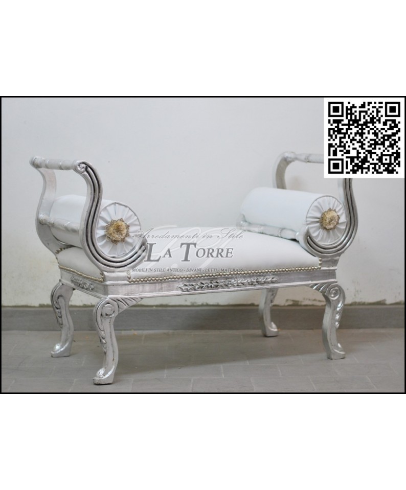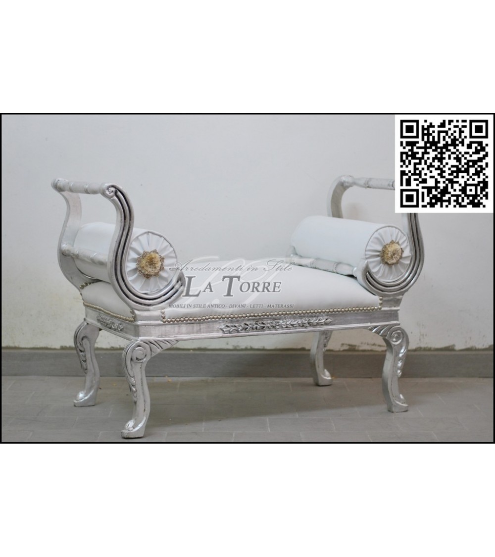 Dormeuse Pompeian bench sofa wooden bench silver white eco-leather AL1891
