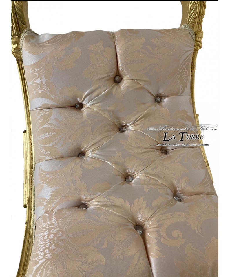 Savonarola Bench Louis XV bench gold champagne damask fabric AR1562