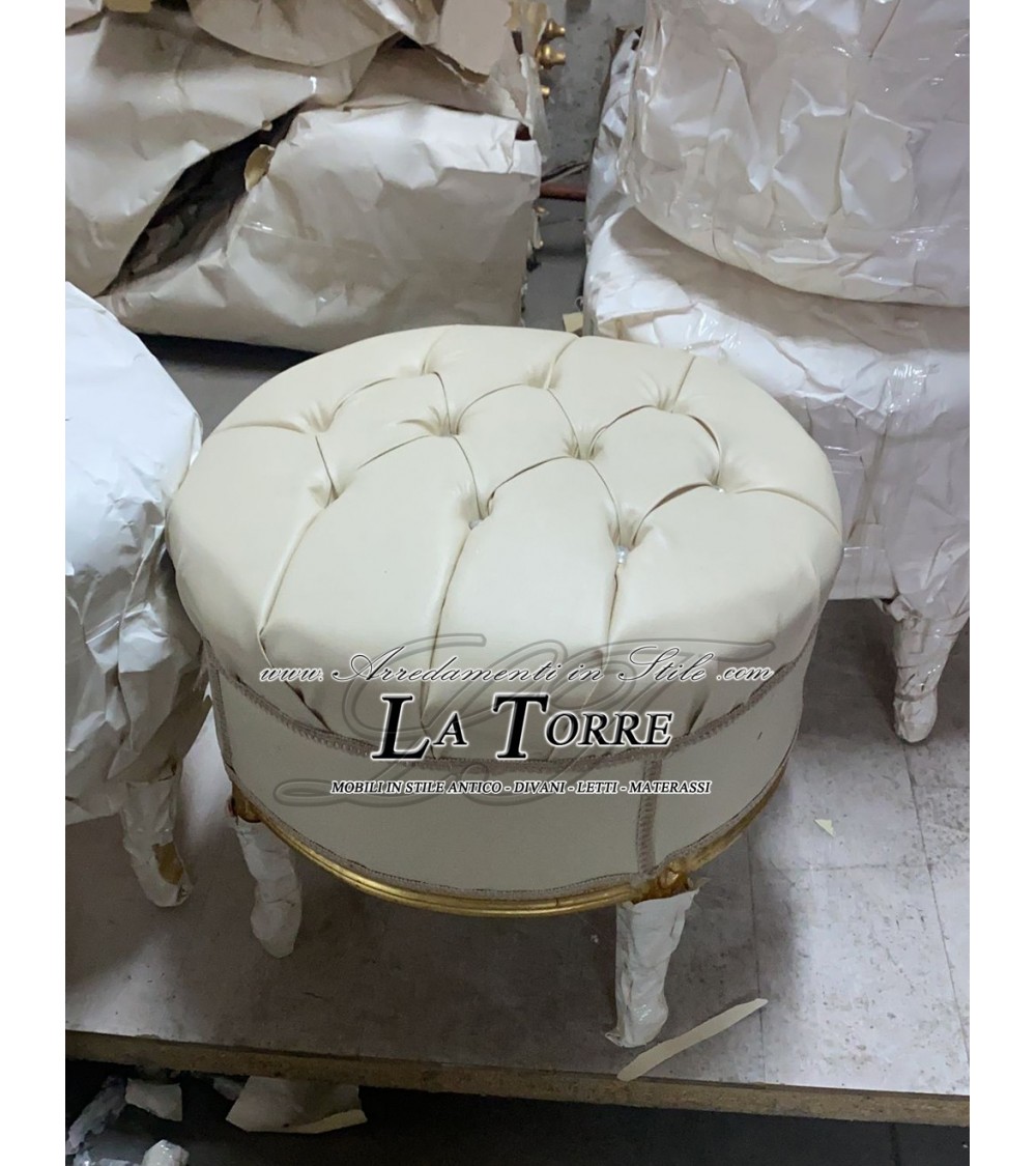 Baroque pouf modern Louis XV gold swarovski eco-leather ivory AL5355