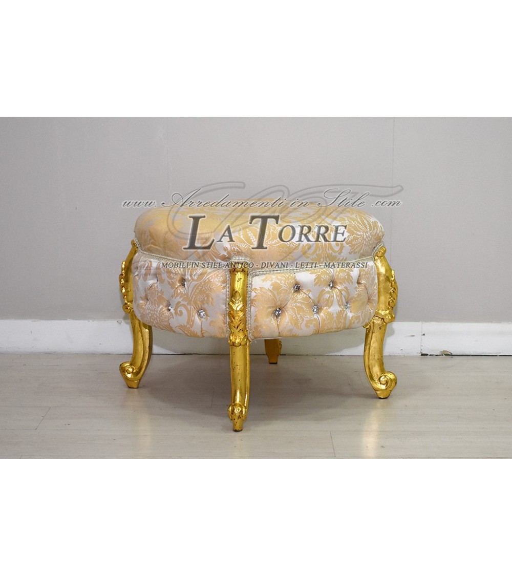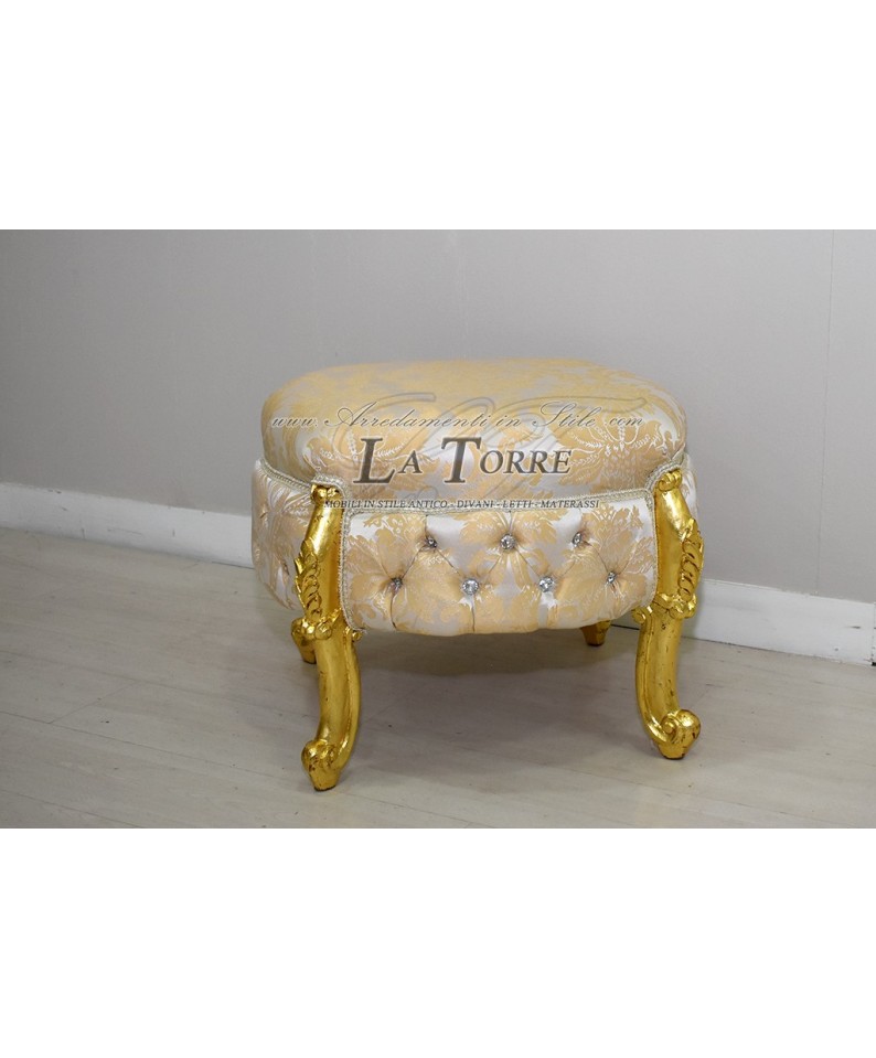 Pouf Sofì Luigi Xv baroque gold leaf seat in ivory damask fabric swarovski AL1887