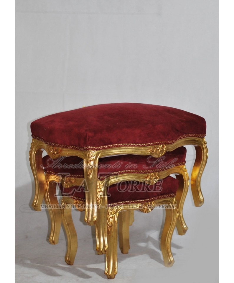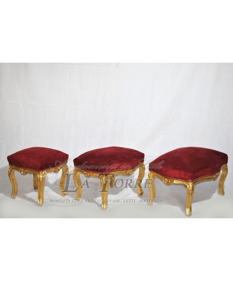 Trio of Louis XV Baroque style pouffes with gold leaf feet and burgundy velvet AL7778