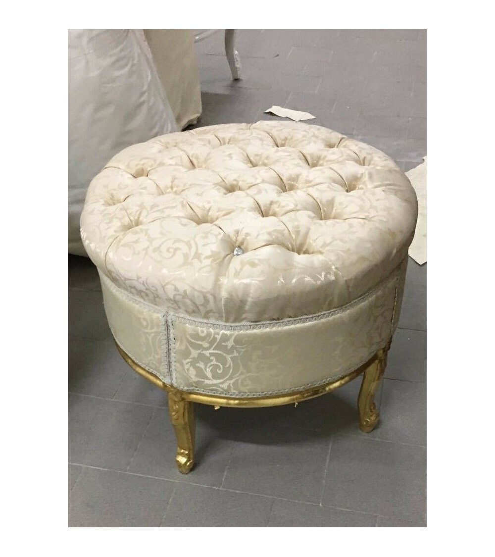 Antique Baroque style pouf with gold leaf feet and ivory swarovski damask fabric seat AL5355