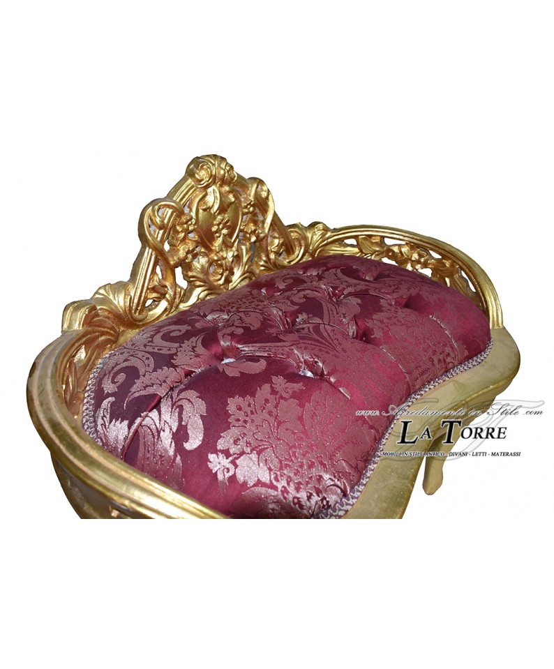 Bench Baroque style bench gold frame lily fabric burgundy AR1563