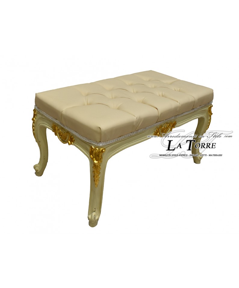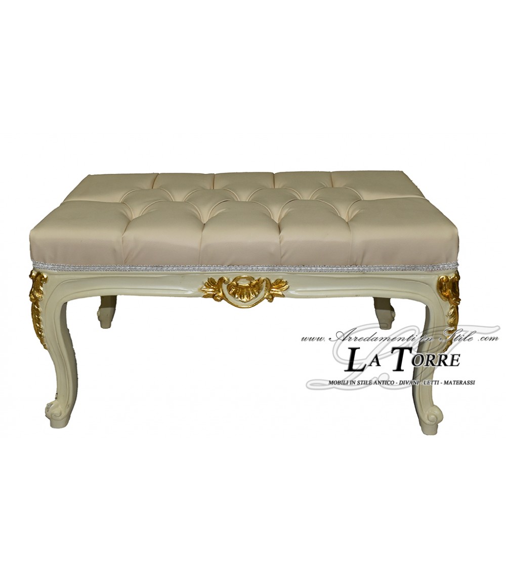 Baroque rectangular bench capitonné ivory gold details eco-leather ivory LT3024