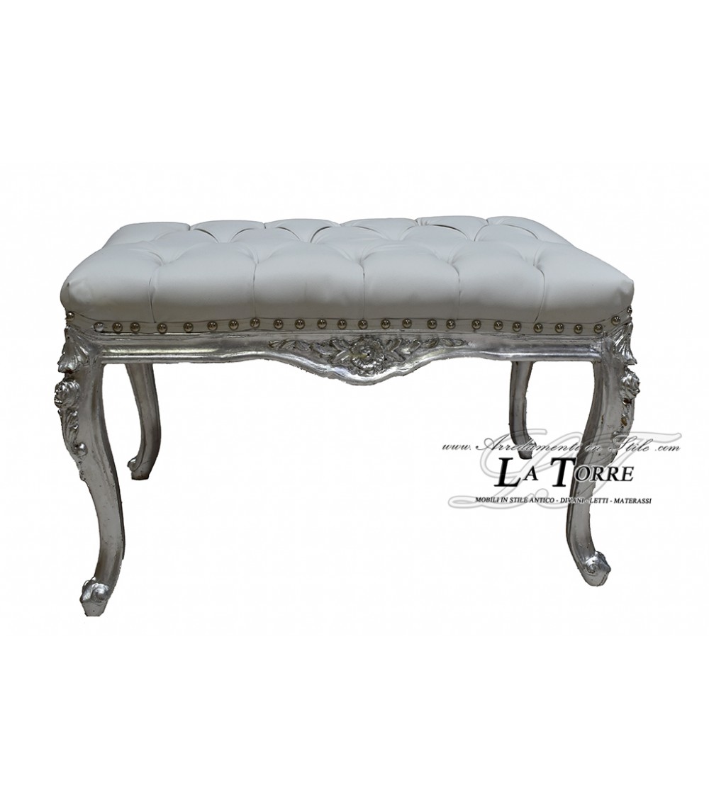 Baroque capitonné rectangular bench silver structure white eco-leather LT3024