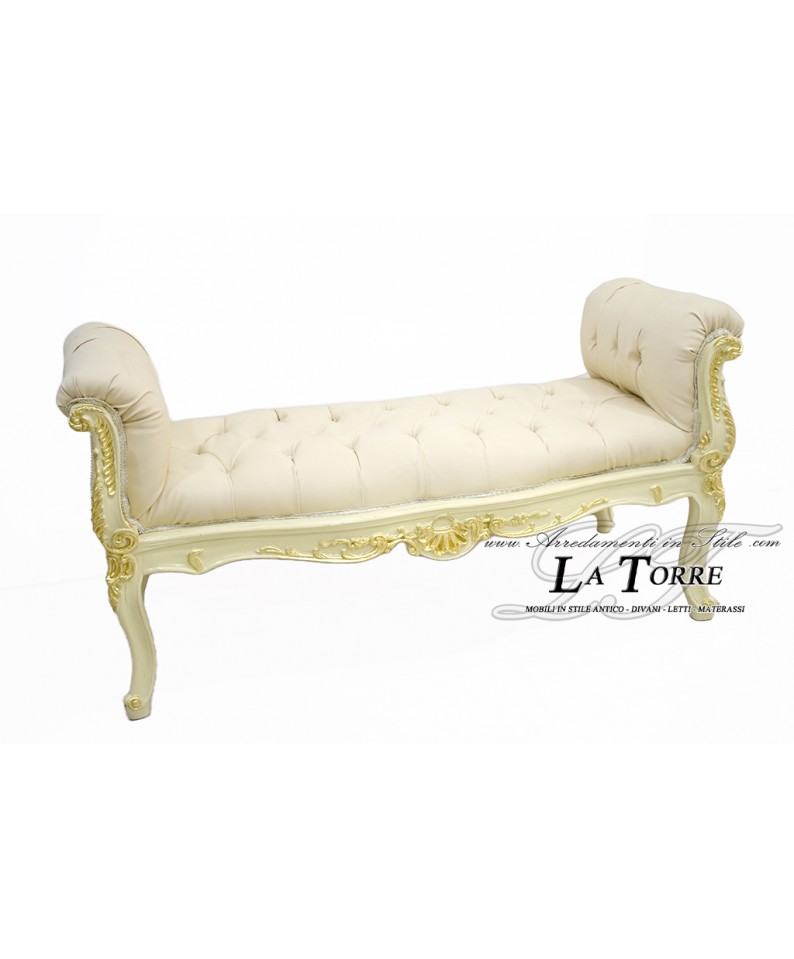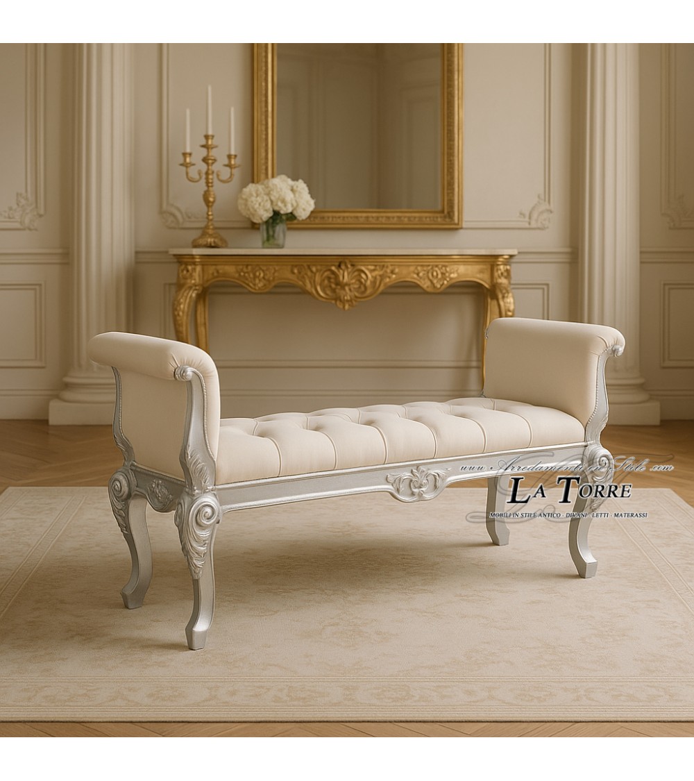 Classic Baroque Bench in Silver Wood and Ivory Fabric – Customizable in AZ39B Colors