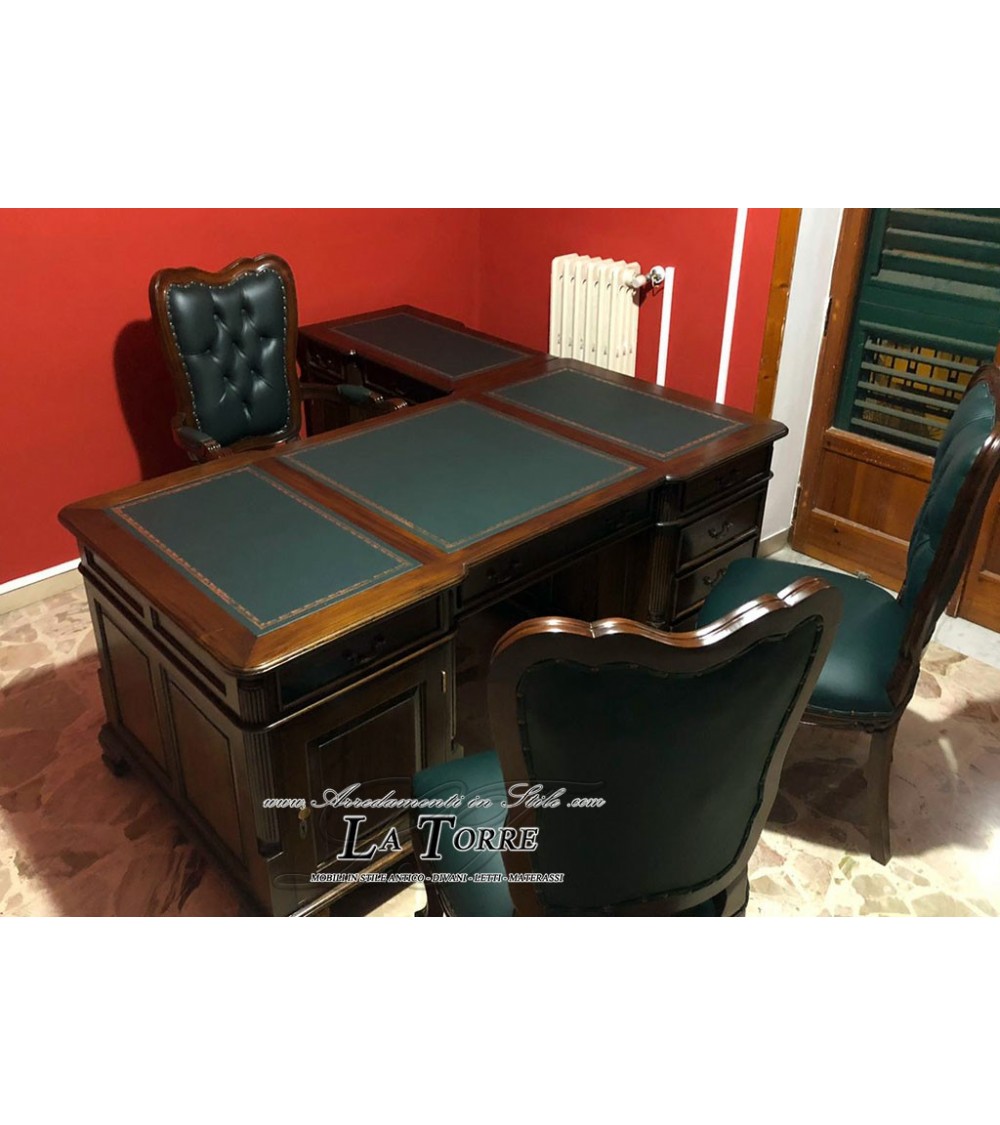 Double-sided presidential ministerial desk in green eco-leather walnut 150 cm