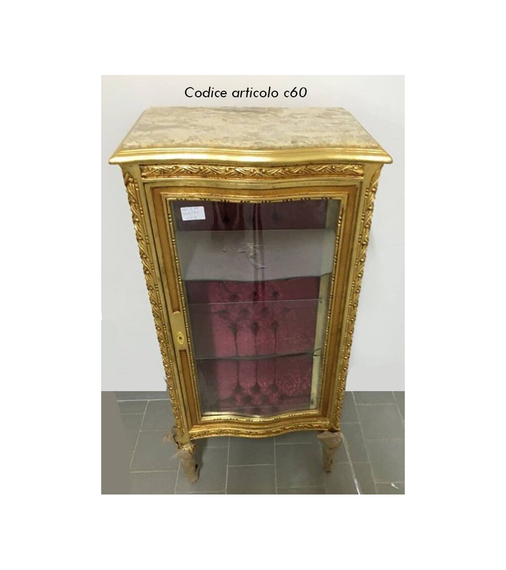 French display cabinet in wood, gold leaf, marble, Louis XV glass cupboard AL2783