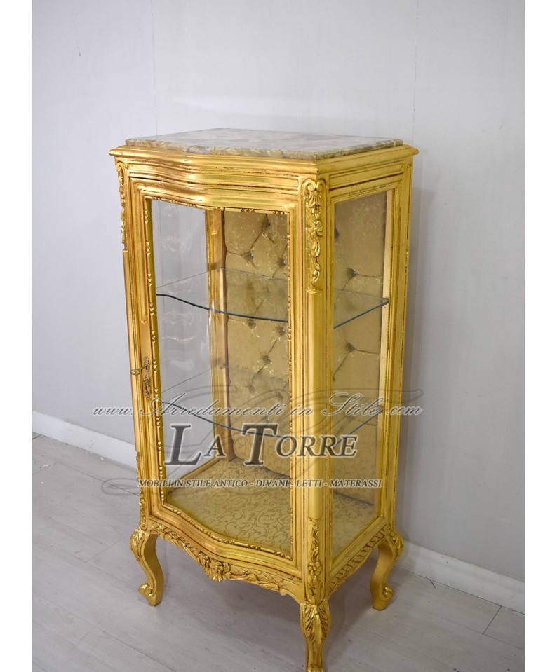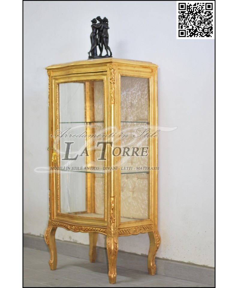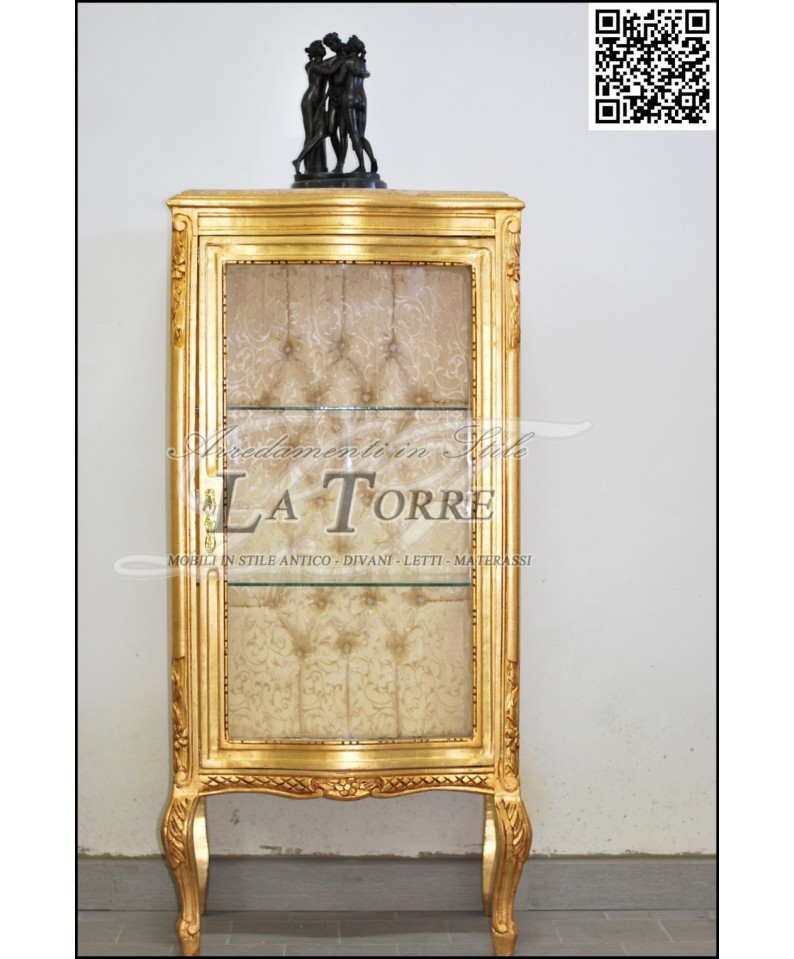 Louis XV glass cabinet baroque Gold Swarovski Damask fabric AL2783
