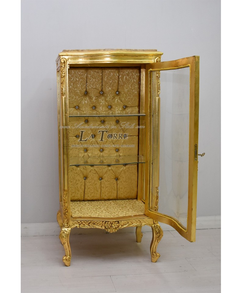 Louis XV Baroque Crystal Showcase Gold Leaf Damask Fabric Swarovski AL2783