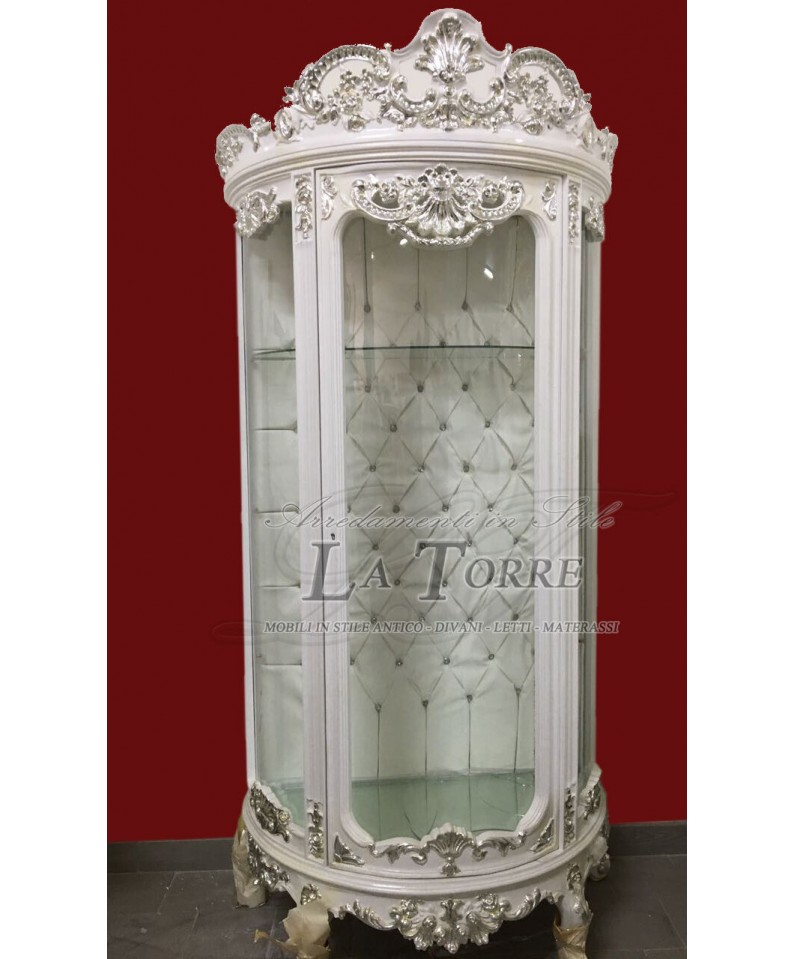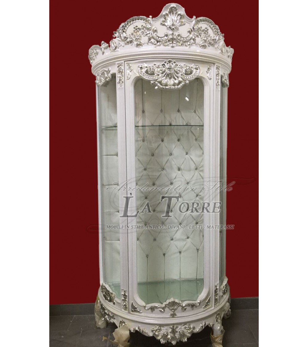 French showcase in glossy white and silver solid wood CRISTALLIERA wa0064