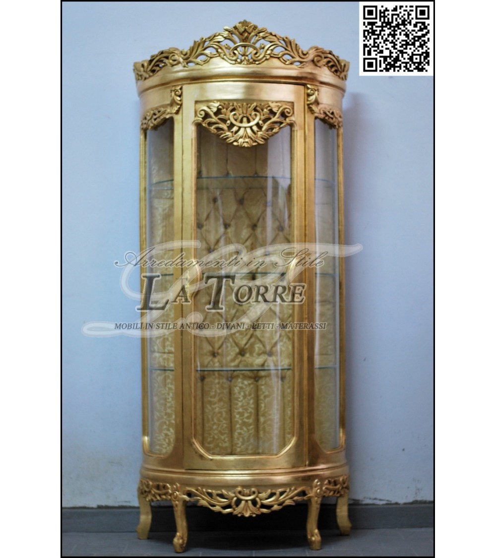 Louis XV gold crystal display cabinet Baroque swarovski damask fabric AL9197