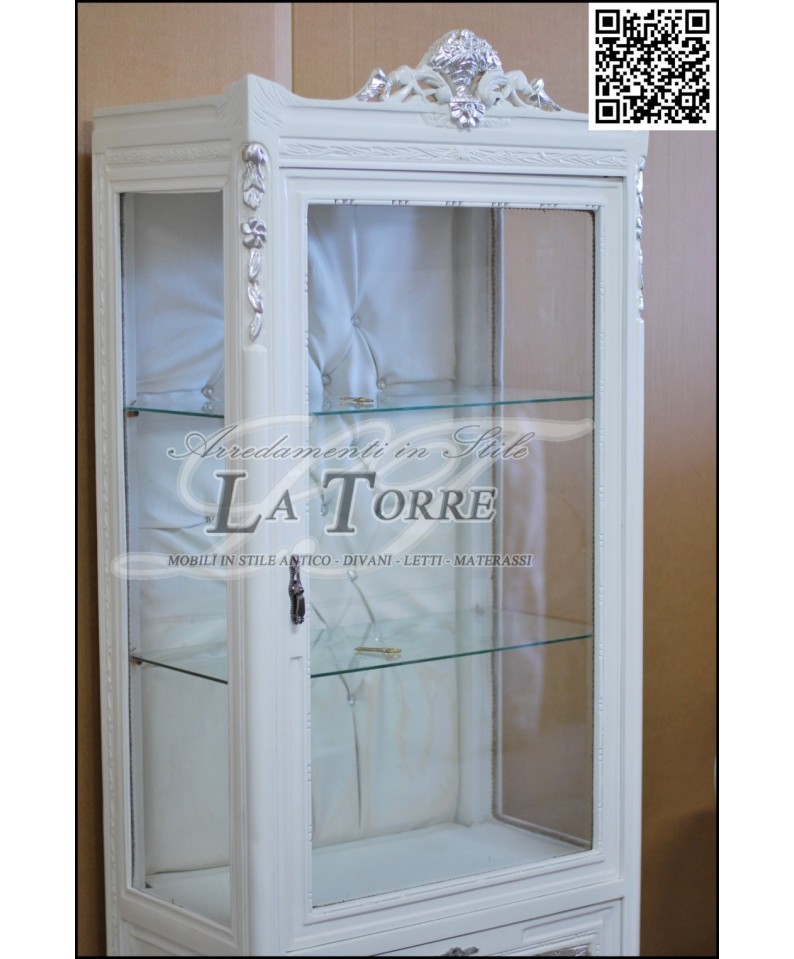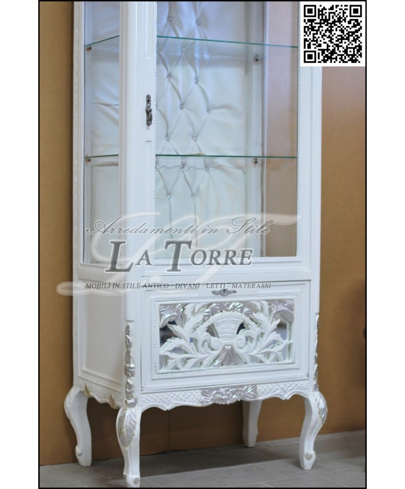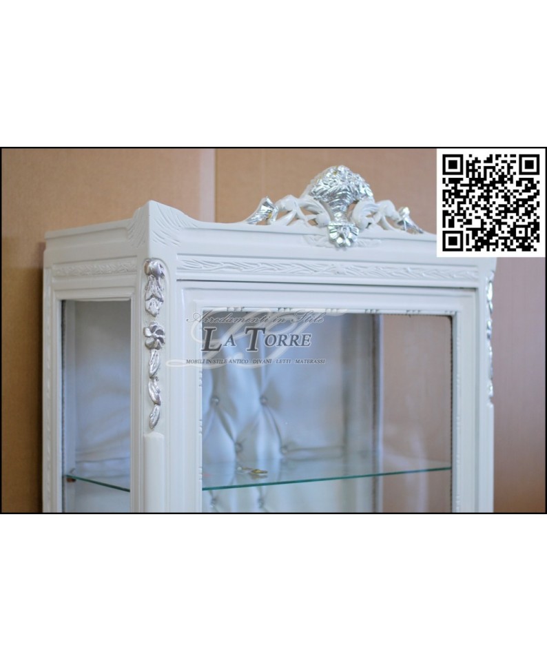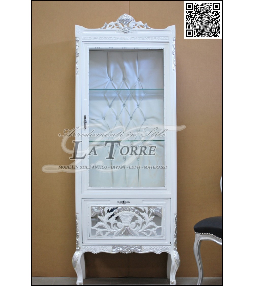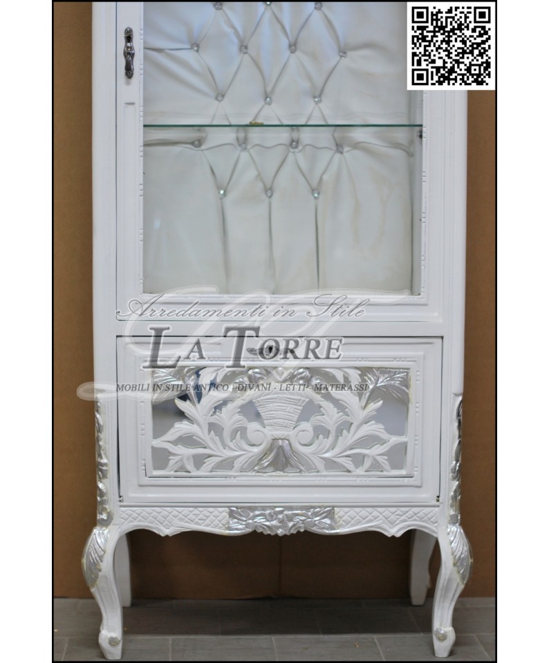 Louis XV glass cabinet baroque white silver Swarovski eco-leather AL2896