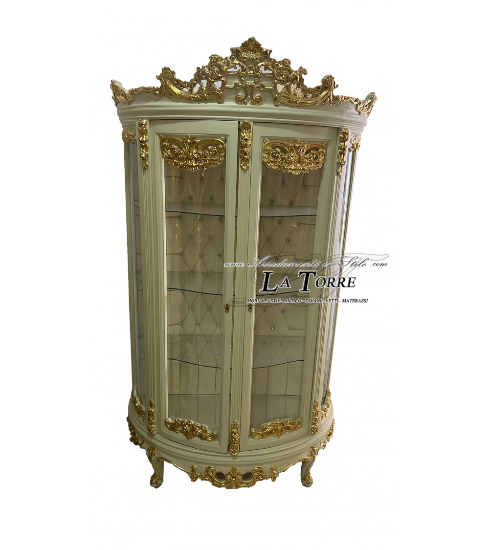 Crystal display cabinet in ivory and gold Louis XV Baroque ecoleather champagne swarovski AL9198