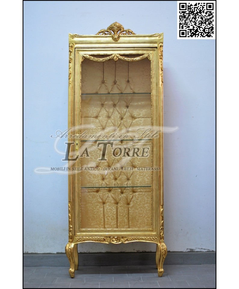 Crystal display cabinet in ivory and gold Louis XV Baroque ecoleather champagne swarovski AL9199