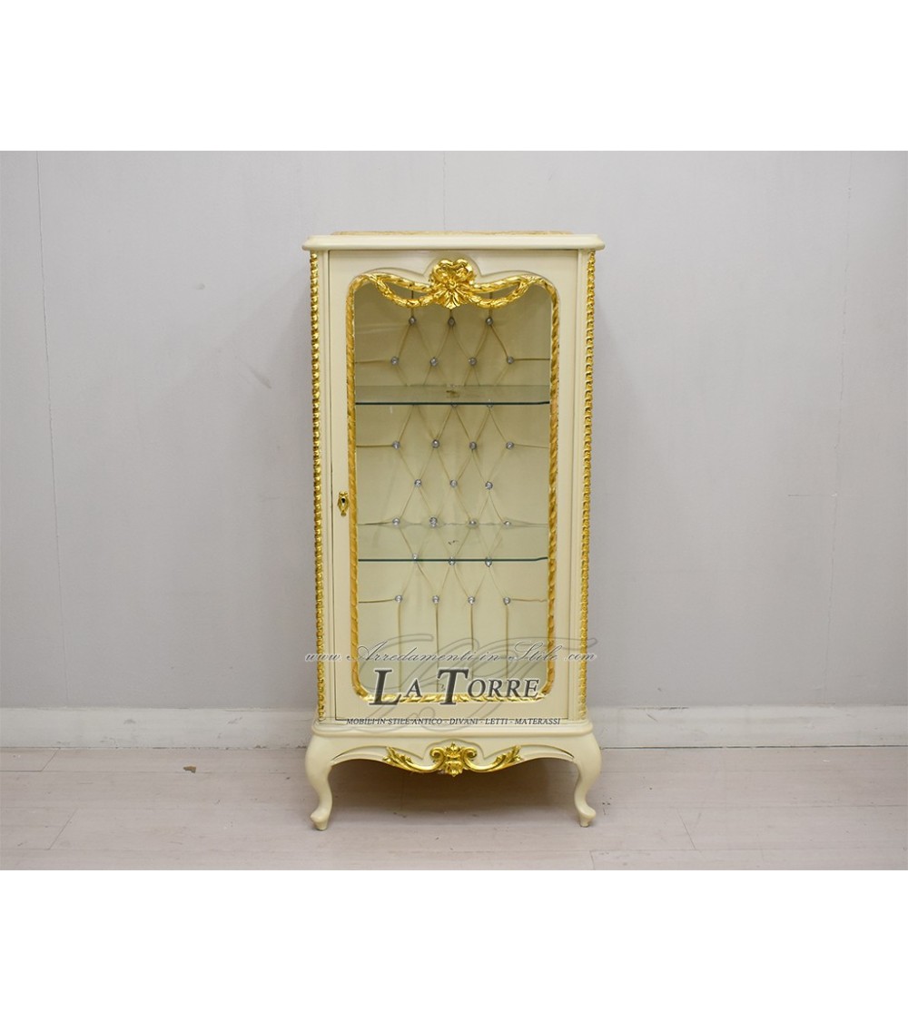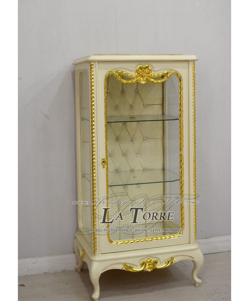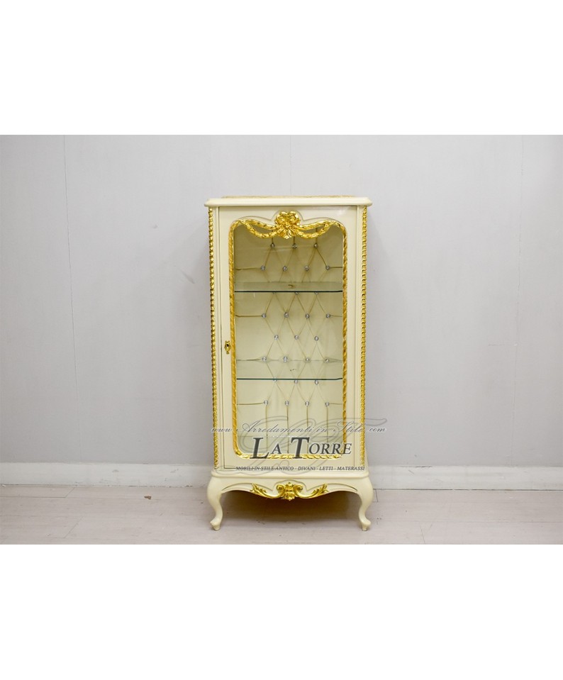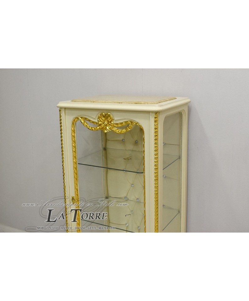 Louis XV baroque crystal display case ivory eco-leather champagne Swarovski AL5156
