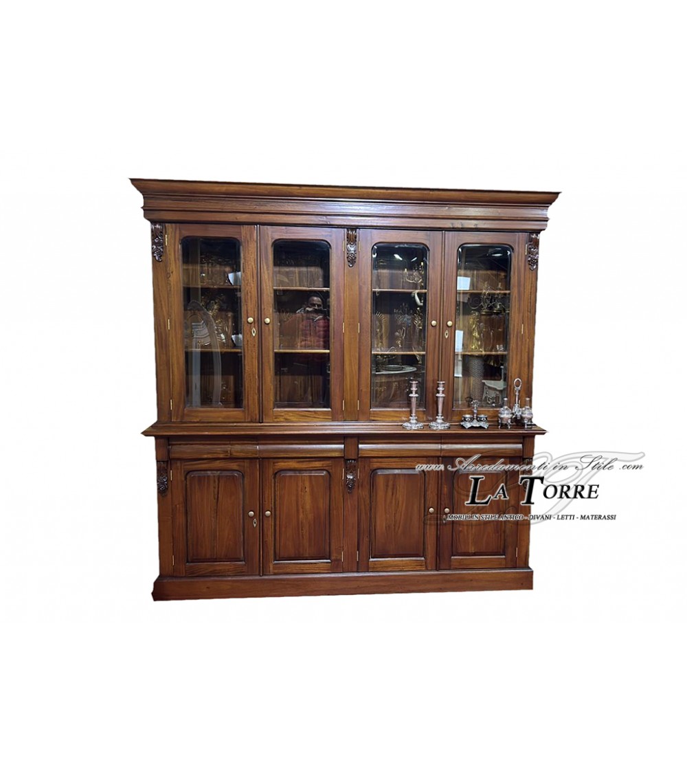 Annette Bookcase English Style Glass Showcase Ministerial Sideboard Presidential Walnut 8 Doors 4 Drawers Na04