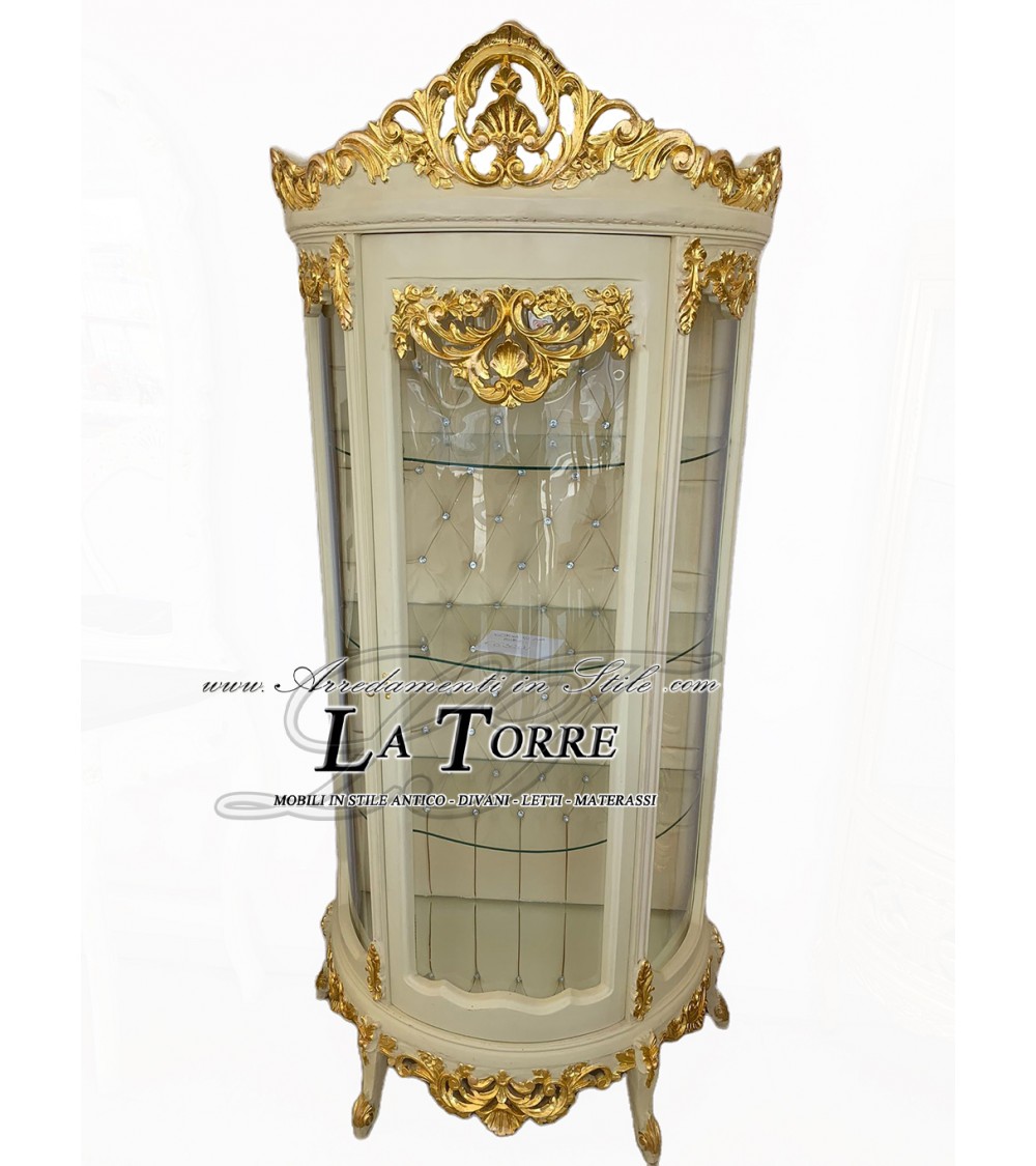 Ivory and gold rounded crystal display cabinet Louis