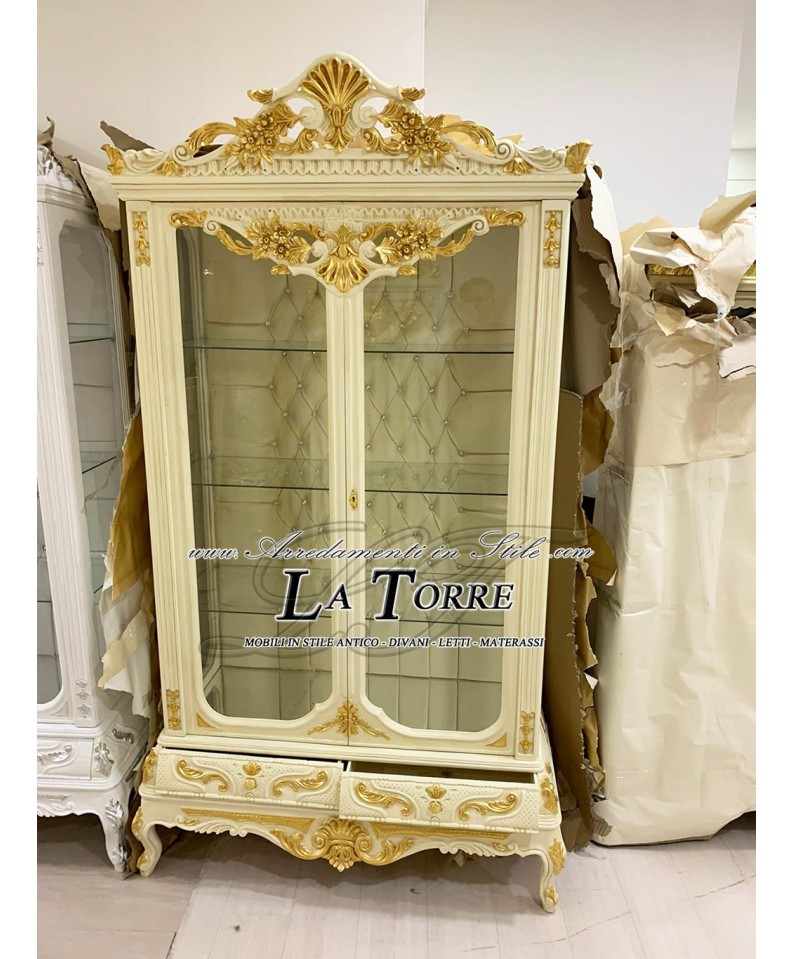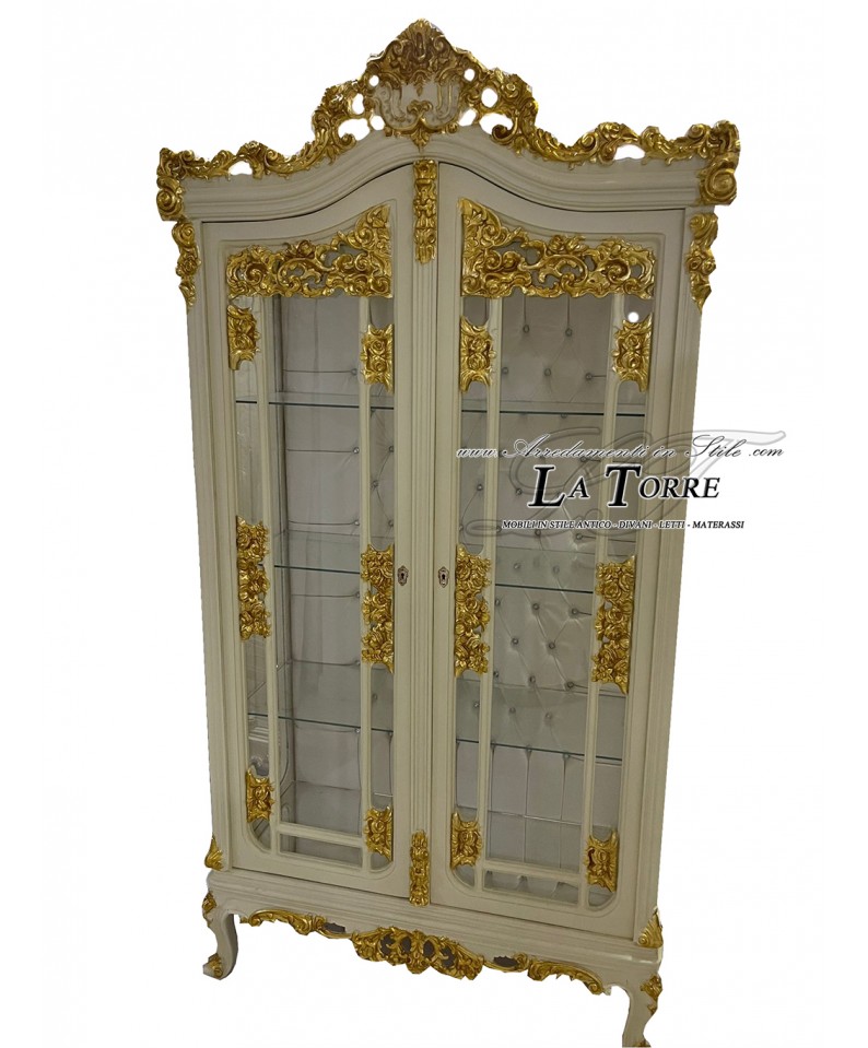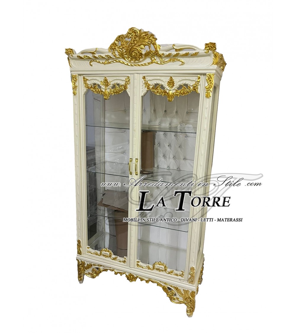 Ivory and gold crystal display cabinet Louis XV Baroque eco-leather champagne swarovski LT3022