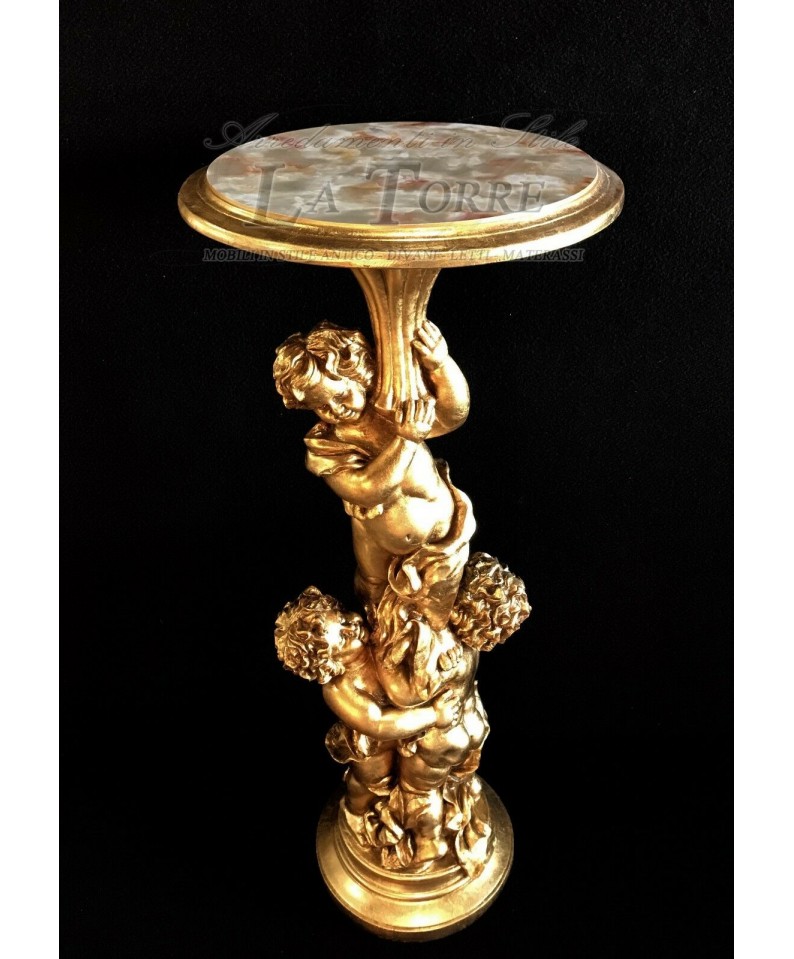 Ancient silik column with splashback Angel Puttino Baroque gold leaf resin R41