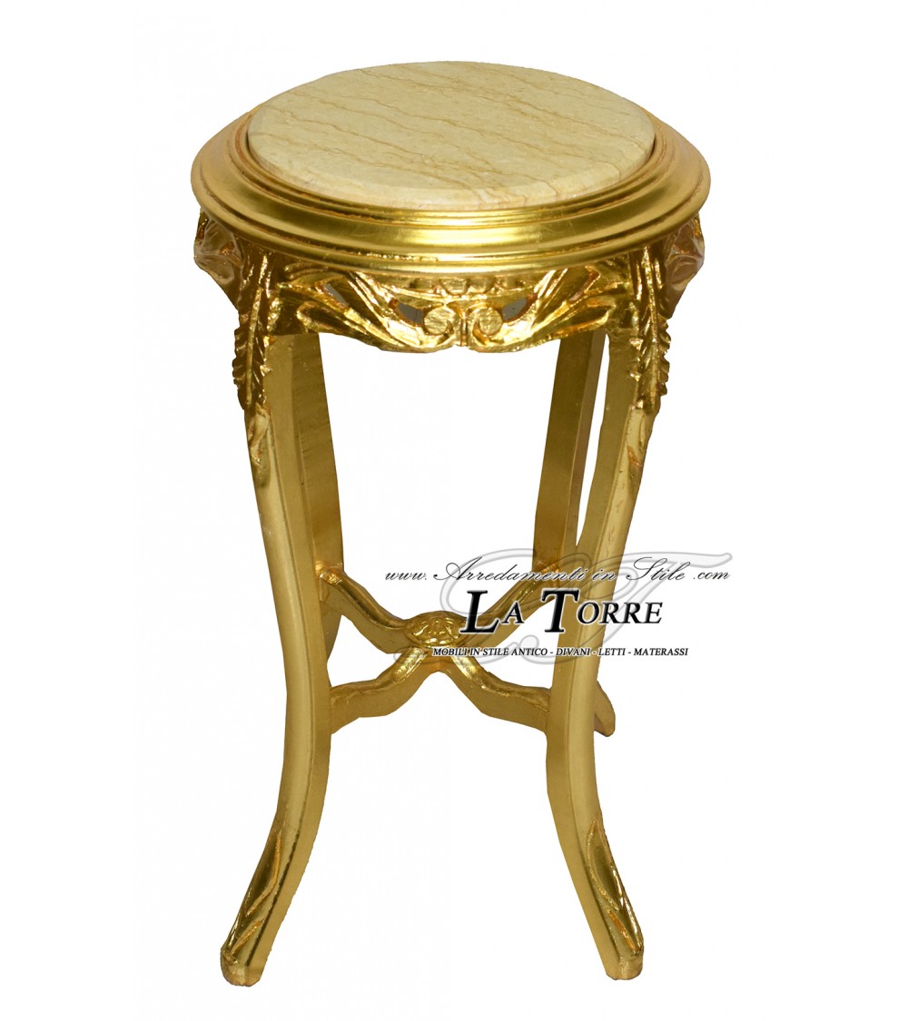 Baroque gold leaf solid wood ivory marble stand table h70 LT3060