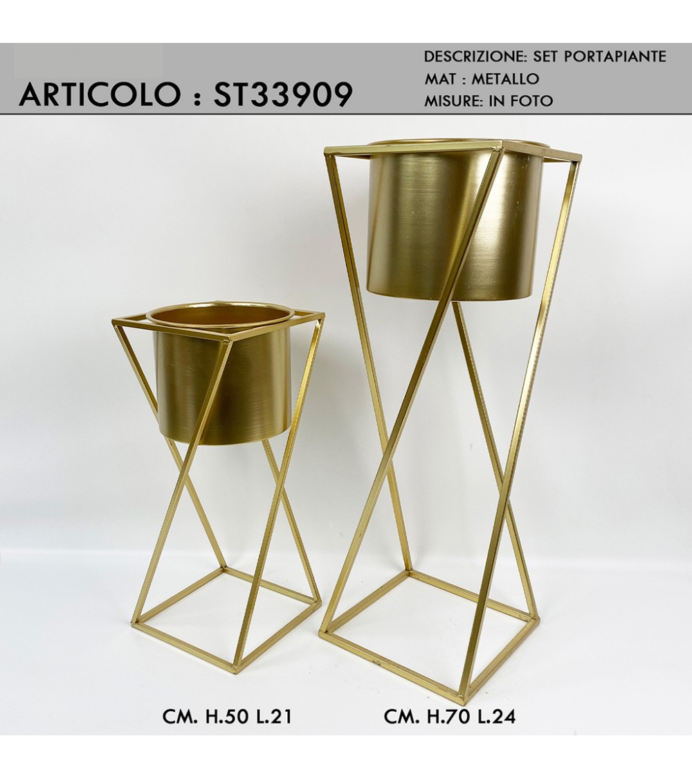 Set of two modern square living room plant holders in gold-coloured metal ST33909