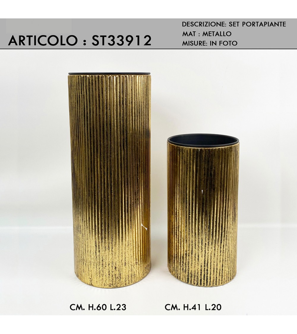 Set of two modern round living room plant holders in gold-coloured metal ST33912