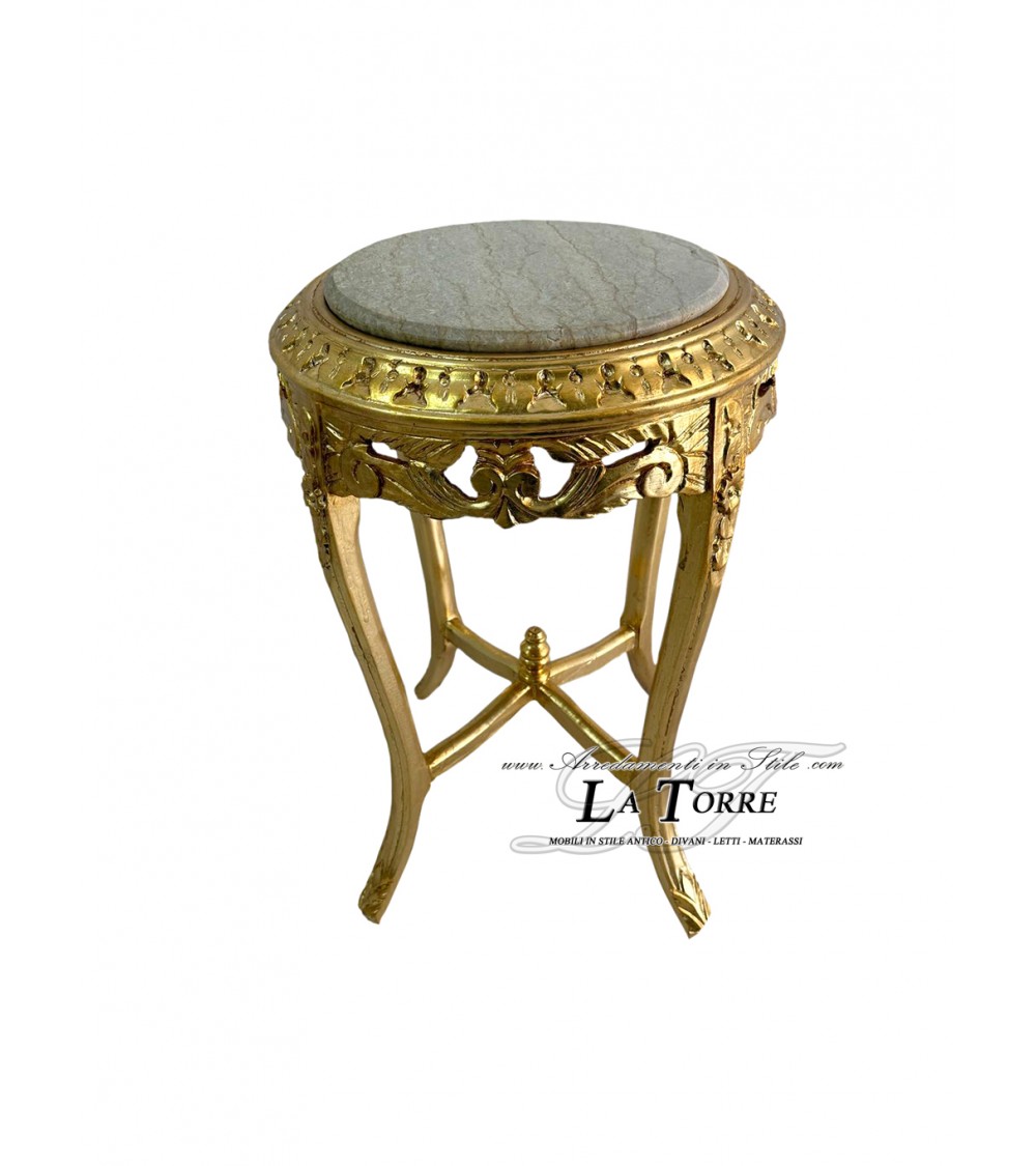 The gold color, applied with mastery, gives the table a sumptuous look and makes it a furnishing element with great visual impact, perfect for adding a touch of luxury to a living room or a living area with a classic and refined style. This stand is a true jewel of craftsmanship, capable of embellishing the surrounding environment with its timeless beauty.
