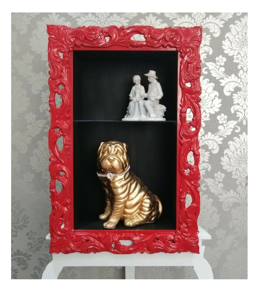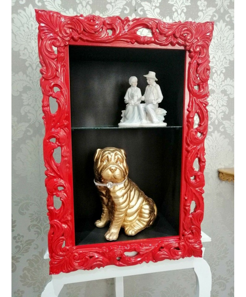 Baroque style suspended wall display cabinet with perforated frame TV box bottle holder made to measure VTGGR