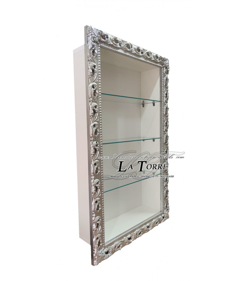 Suspended wall-mounted display cabinet in Baroque style with perforated frame TV box made to measure VTGM224A