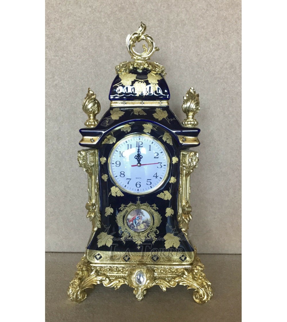 P34 Art Nouveau style blue and gold painted porcelain table clock