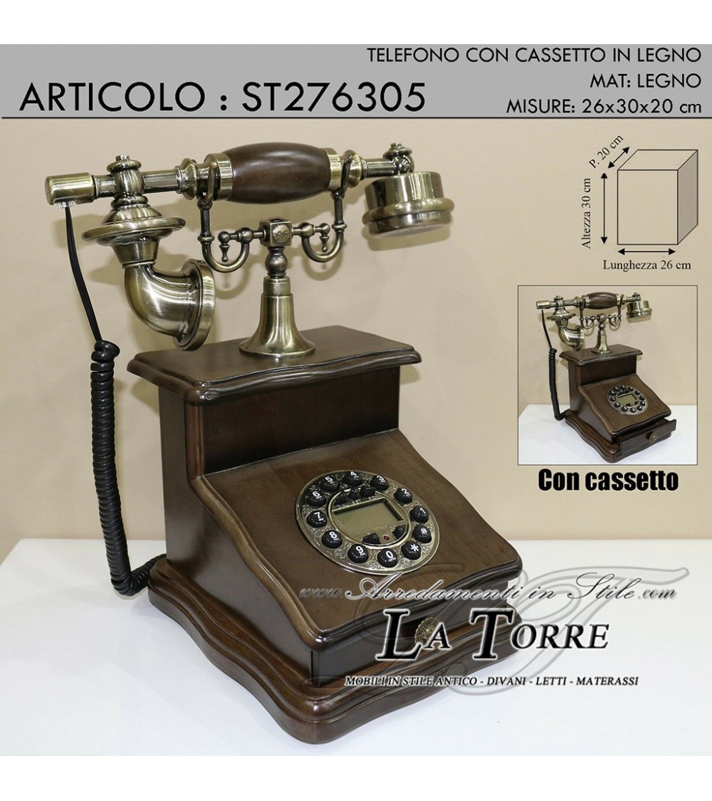 Landline telephone antique style wooden drawer telephone walnut color st276305