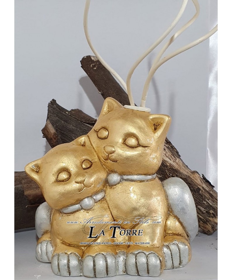 Statue perfumer couple of cats gold silver leaf ornament home decoration OG352
