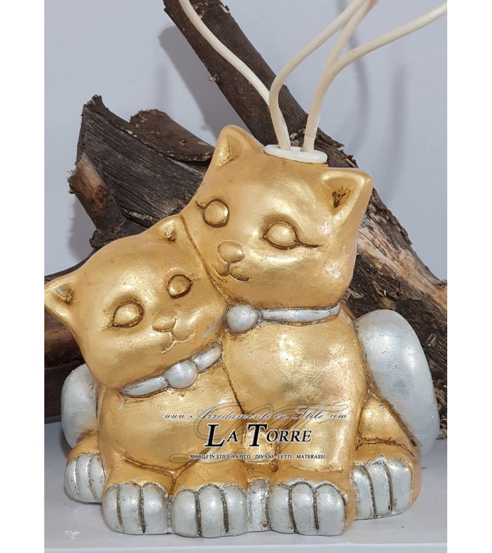 Statue perfumer pair of cats gold leaf silver ornament home decoration OG352