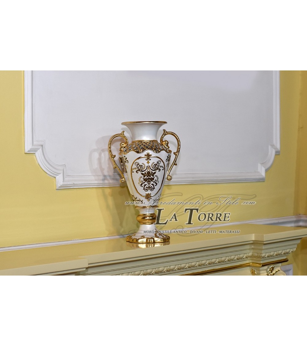 Cup amphora with ivory ceramic handles gold vase ornament DS01