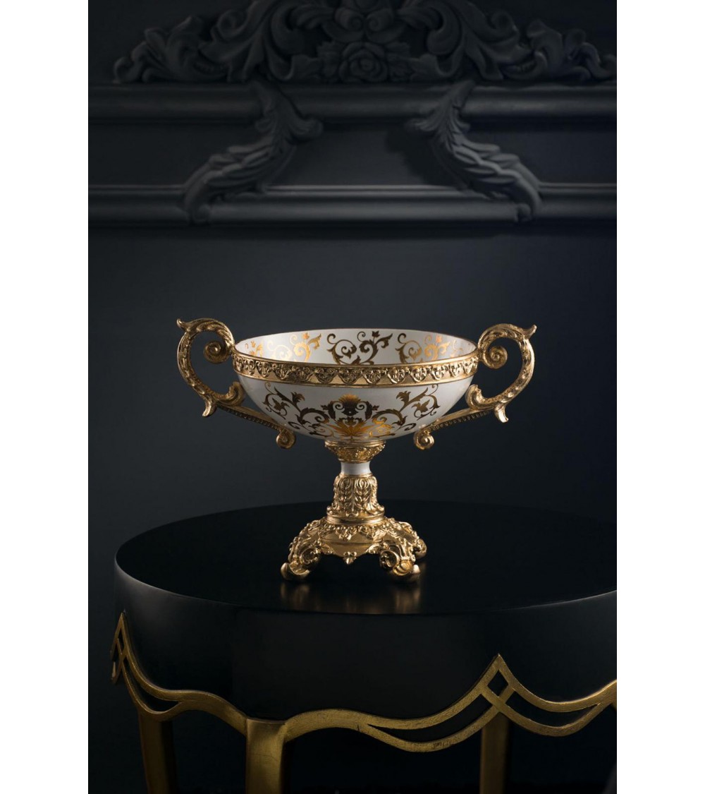 Amphora cup with handles ceramic centerpiece 28 h ivory gold vase ornament Vi35