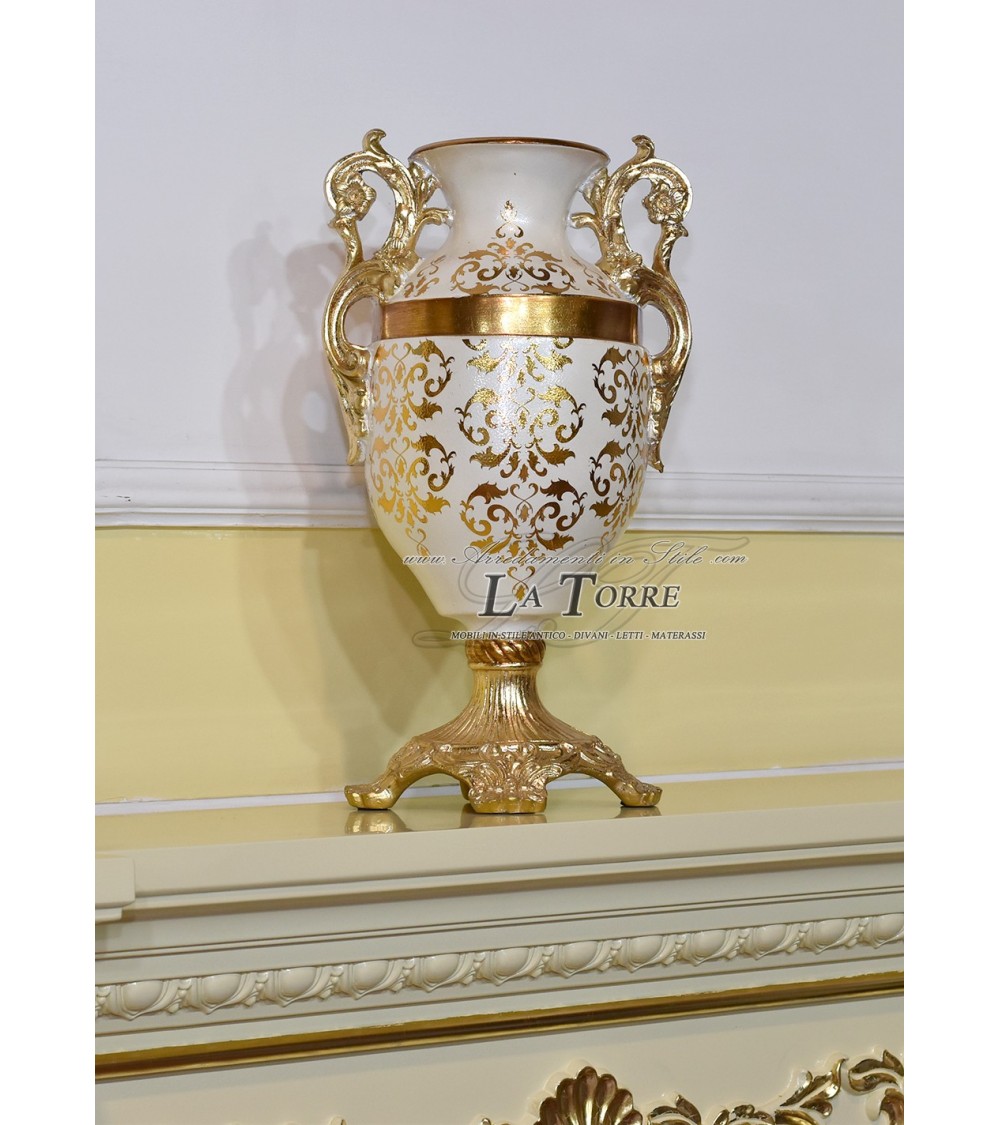 Amphora cup with handles ceramic centerpiece ivory gold vase ornament DS37