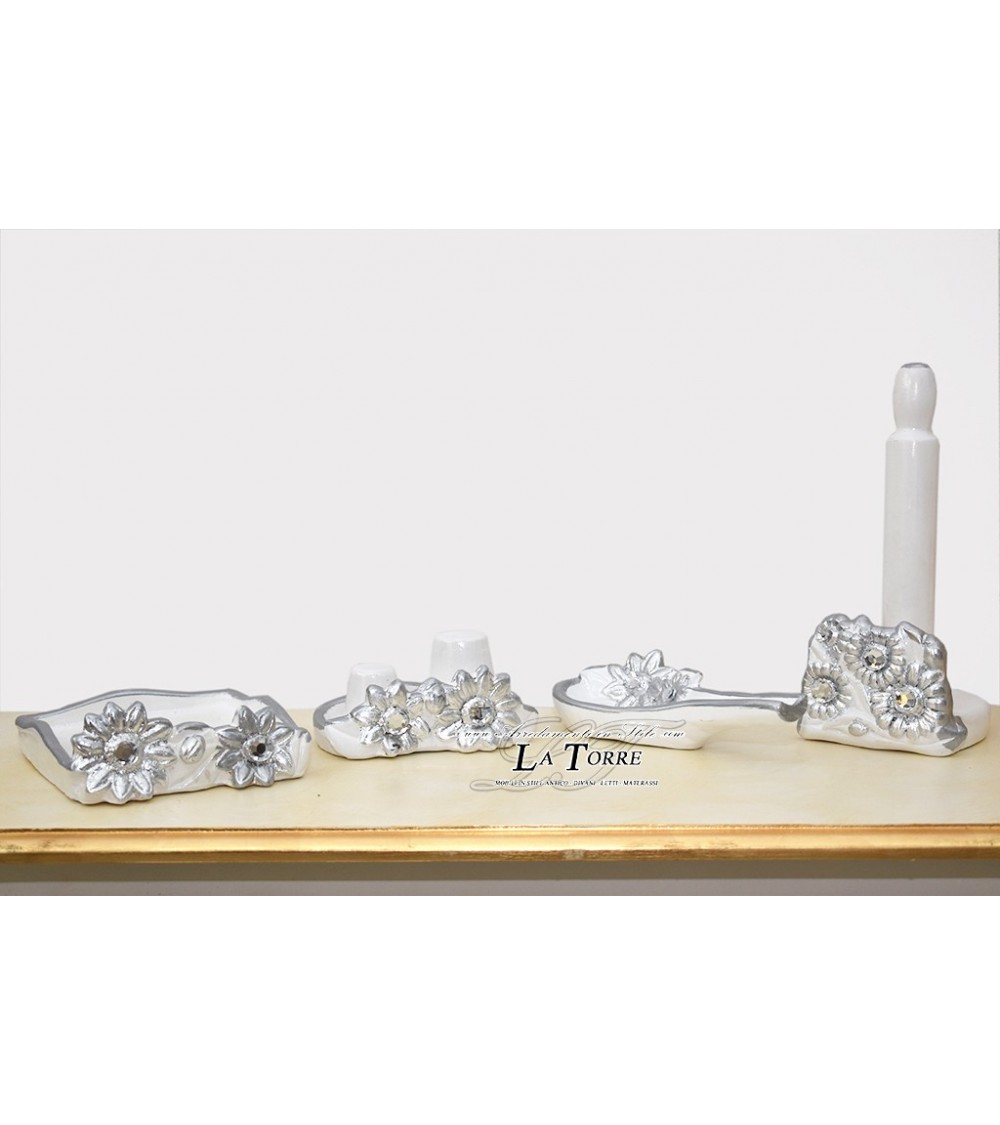 Set of 4 ceramic pieces roll holder, ladle rest, cup holder, napkin holder, sunflower line PR45