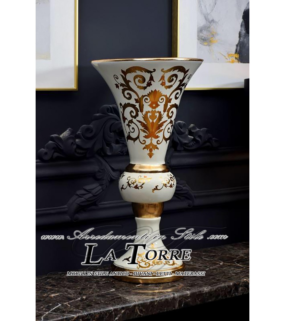 Ceramic hand-painted amphora cup Ivory and gold Demetra vase RA10