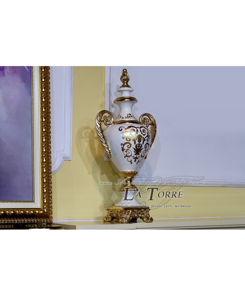Amphora ceramic cup ivory centerpiece vase gold leaf ornament Vi12