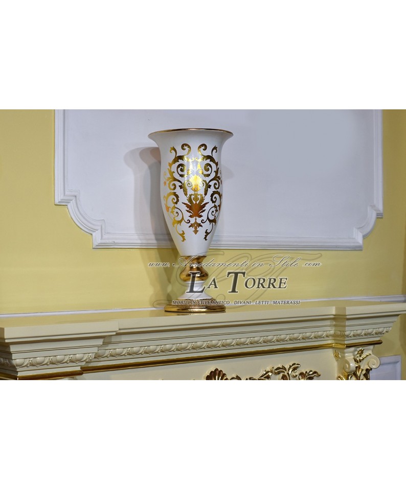 Amphora ceramic cup ivory centerpiece vase gold leaf ornament Vi14