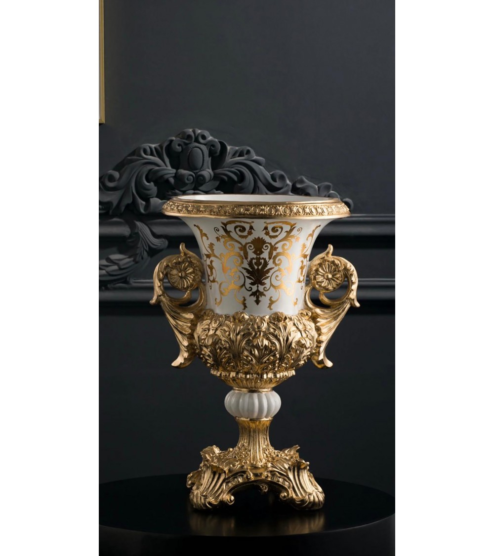 Amphora ceramic cup ivory centerpiece large crater vase gold ornament Vi15