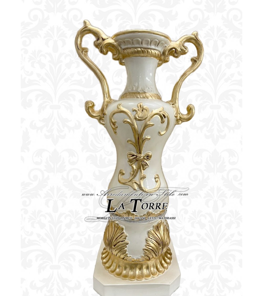 Amphora cup vase with handles H 90 cm ivory and gold ceramic PR57