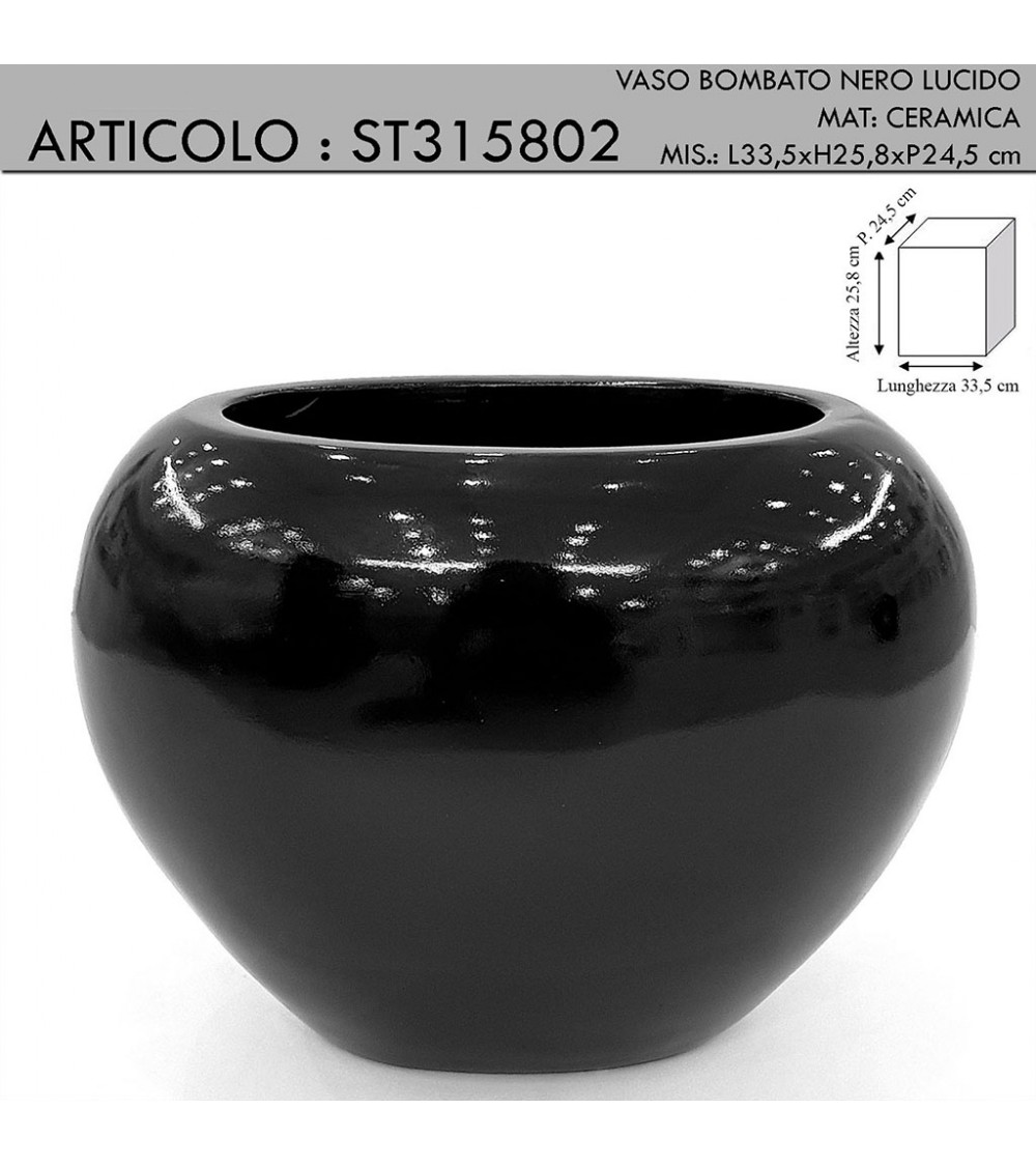Modern amphora flower holder rounded glossy black ceramic vase ST315802