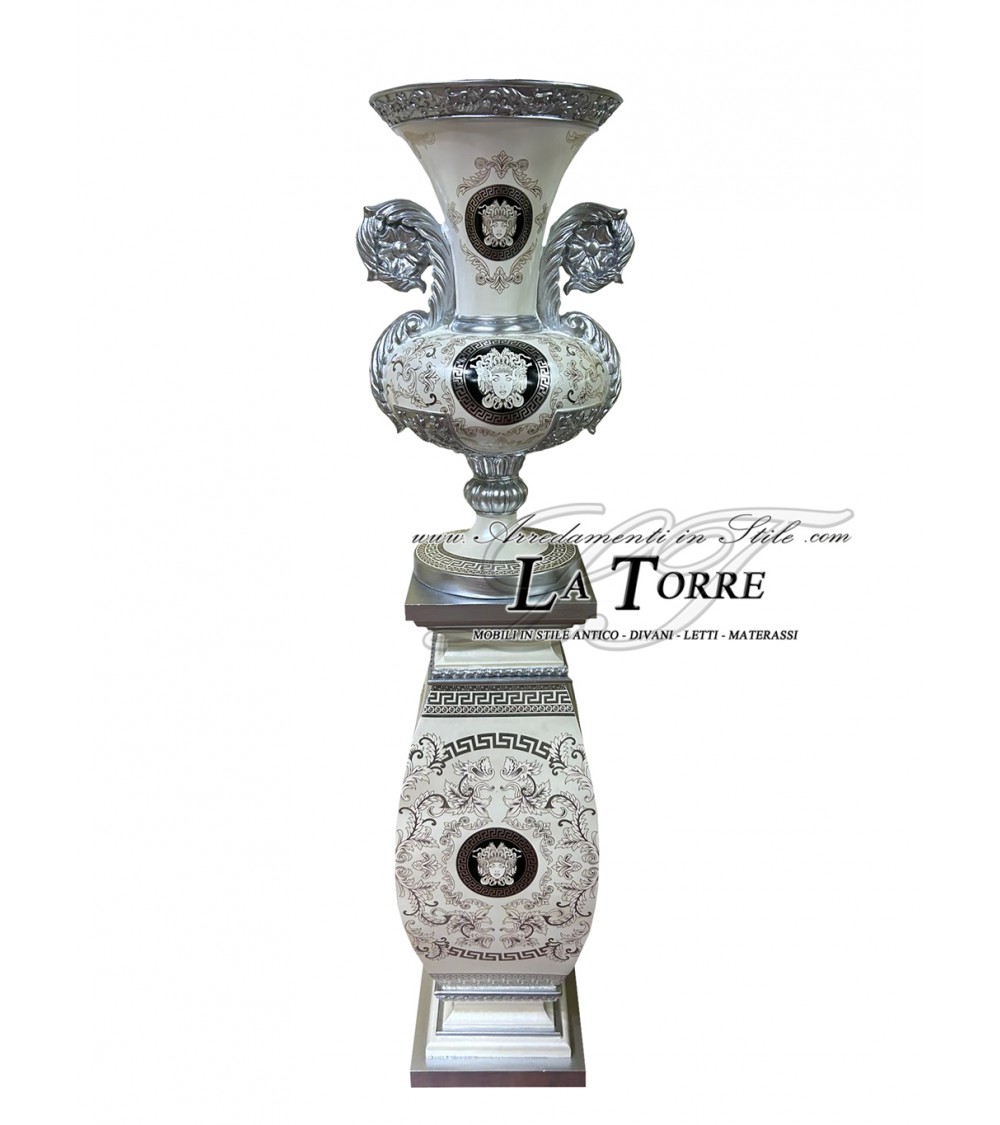 Amphora ceramic cup Goddess Medusa centerpiece vase crater white and silver ornament MED03