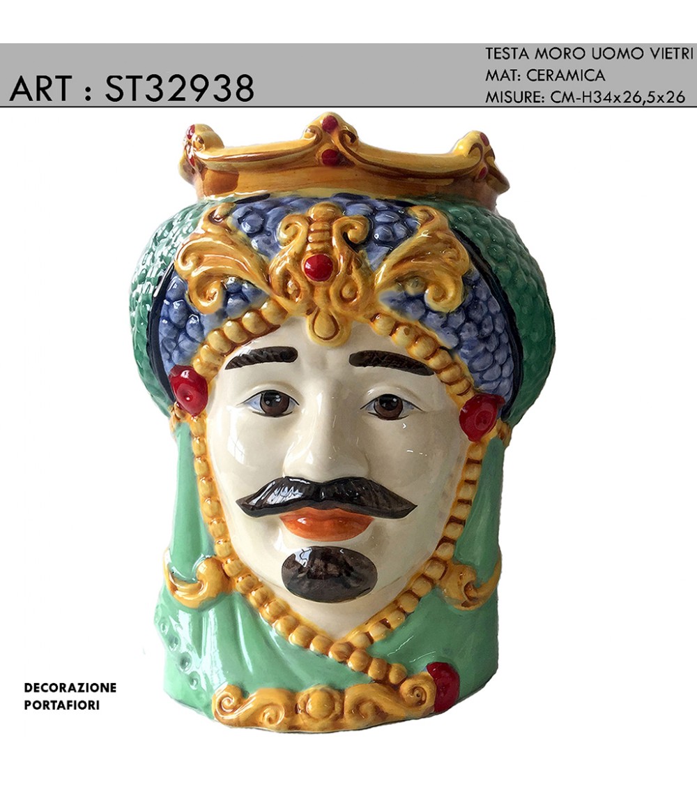 Moro head sculpture statue Vietri flower holder 34 h cm ceramic favor ST32938