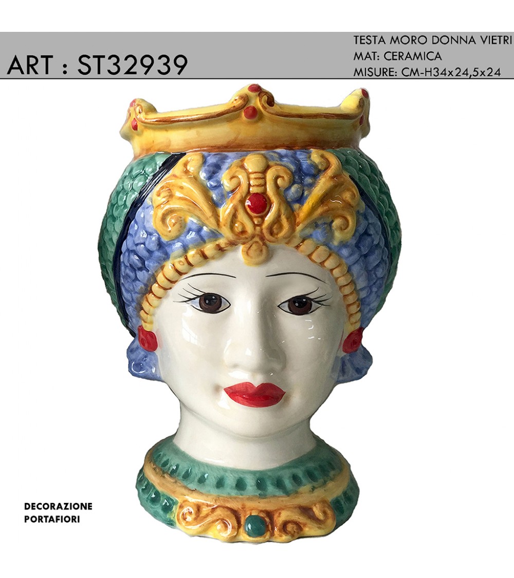 Vietri woman Moro head sculpture statue flower holder 34 h cm ceramic favor ST32939