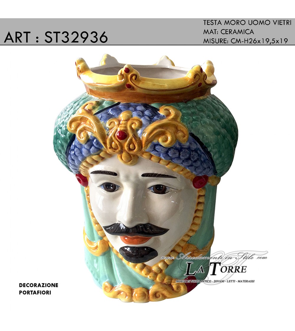 Sculpture statue of Moro's head man Vietri flower holder 26h cm ceramic favor ST32936