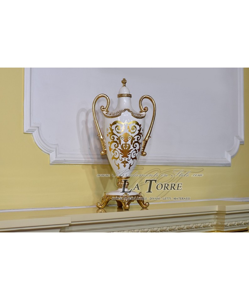 Amphora cup with handles ivory ceramic gold vase ornament Vi31